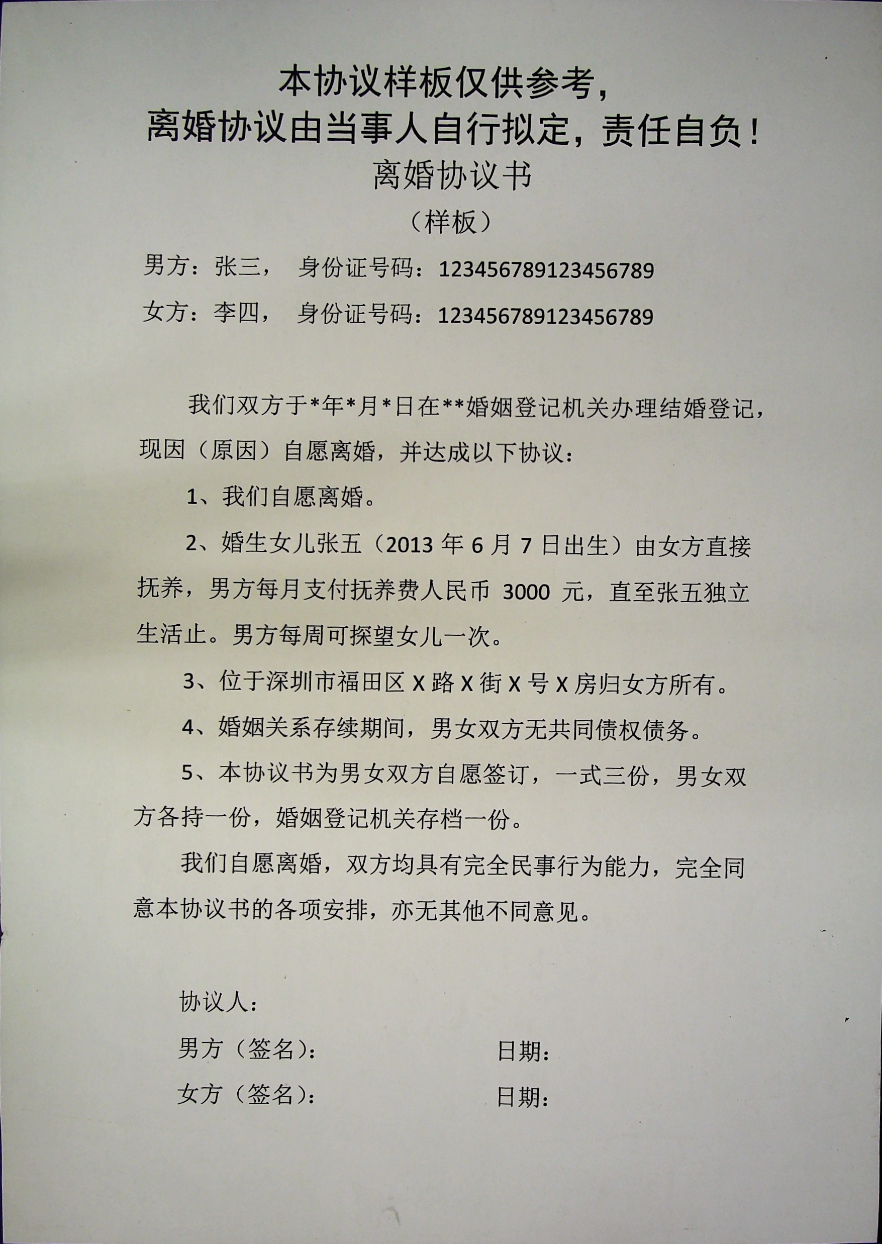 | 1 | 离婚协议书(样板) | 查看 |